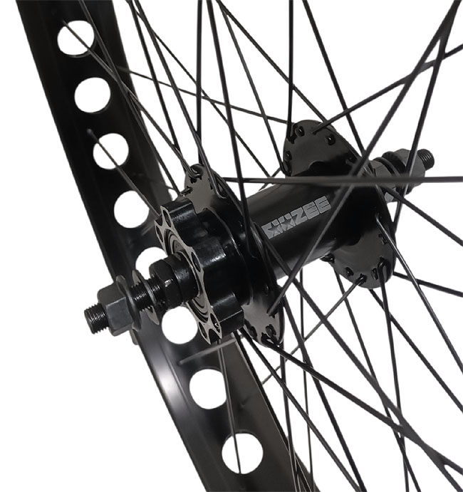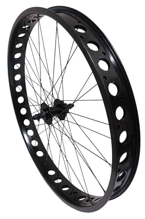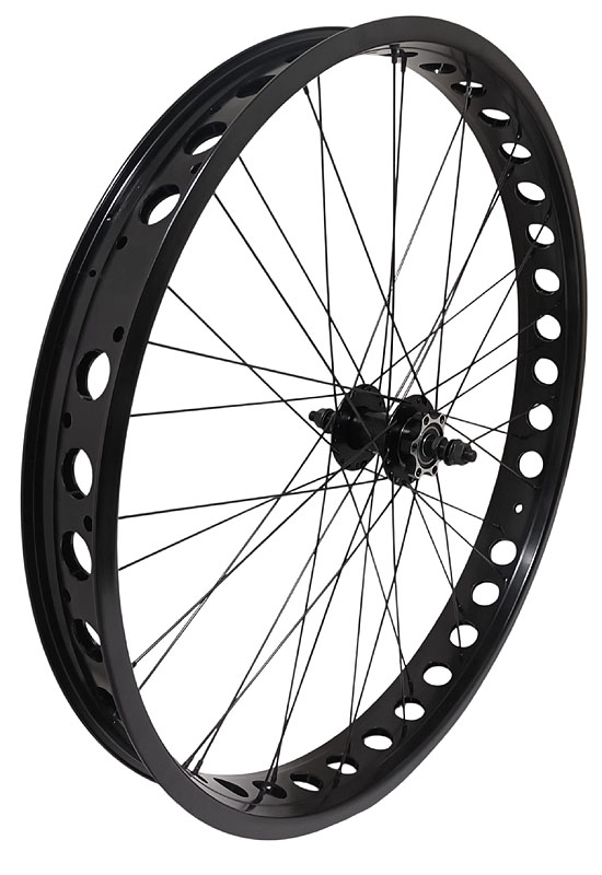 frontwheel 26" 559 65mm wide DW CUT-OUT rim BLACK bolt-on hub w.disc brake OLD100mm RIGID AXIS robs
