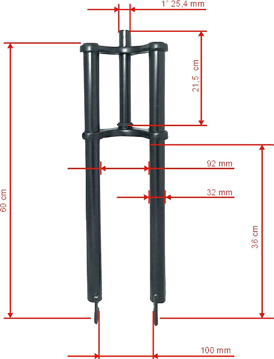 - Distance between fork crown and axle dropout ca. 36 cm ( depends head tube length )