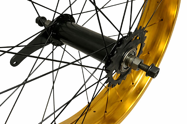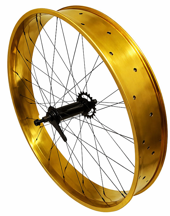 rearwheel FATcruiser 26" 100mm YELLOW ANODIZED/ GOLD rim wide SingleSpeed hub w.coaster brake OLD170